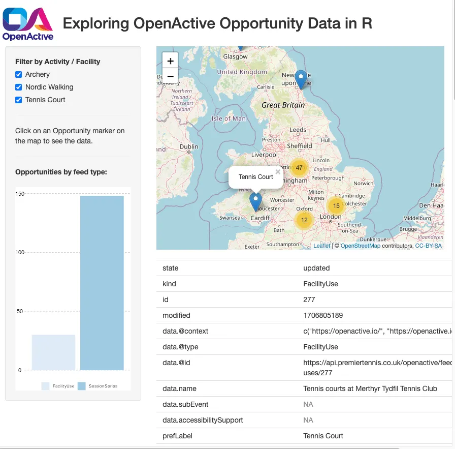 The R code is presented as a simple tutorial that walks through the process of collecting and displaying OpenActive data, explaining some of the data structures along the way. Copy the code into R — we recommend using R Studio — and follow along.